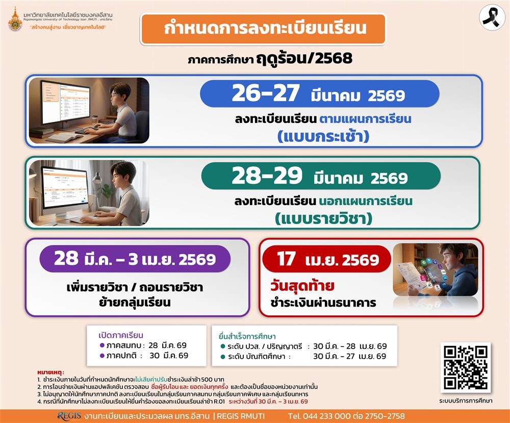 กำหนดการลงทะเบียนเรียนและชำระเงิน